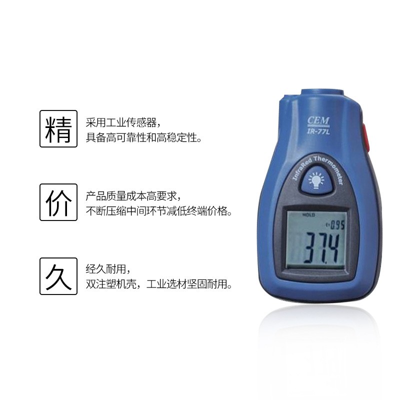 產(chǎn)品特點】 內(nèi)置式激光瞄準 ·距離目標比6:1(能夠在一步外測量2米內(nèi)區(qū)域的溫度) ·便攜式易使用:將儀器控制在測量區(qū)域的兩步內(nèi),按下按鈕就可以完成測溫 ·帶背光源液晶顯示屏,℃/℉選擇按鍵 ·自動數(shù)據(jù)保持,自動關機 ·電池低電能顯示 ·適用于:交流電源和制熱系統(tǒng),對冰箱/洗碗機/制冰機和烤箱等電器進行溫度監(jiān)控,確保正確的烹飪/烘烤及儲藏溫度