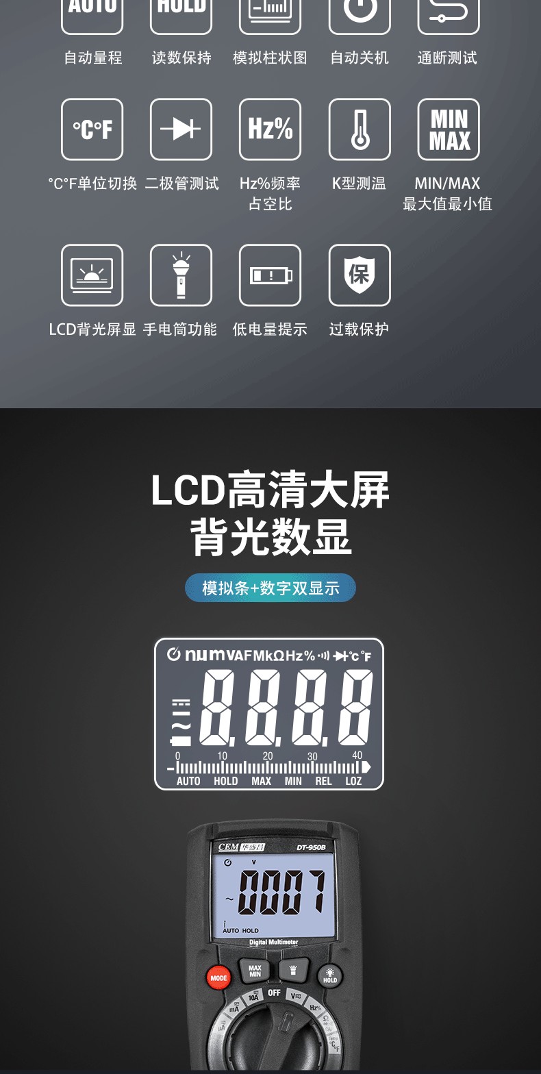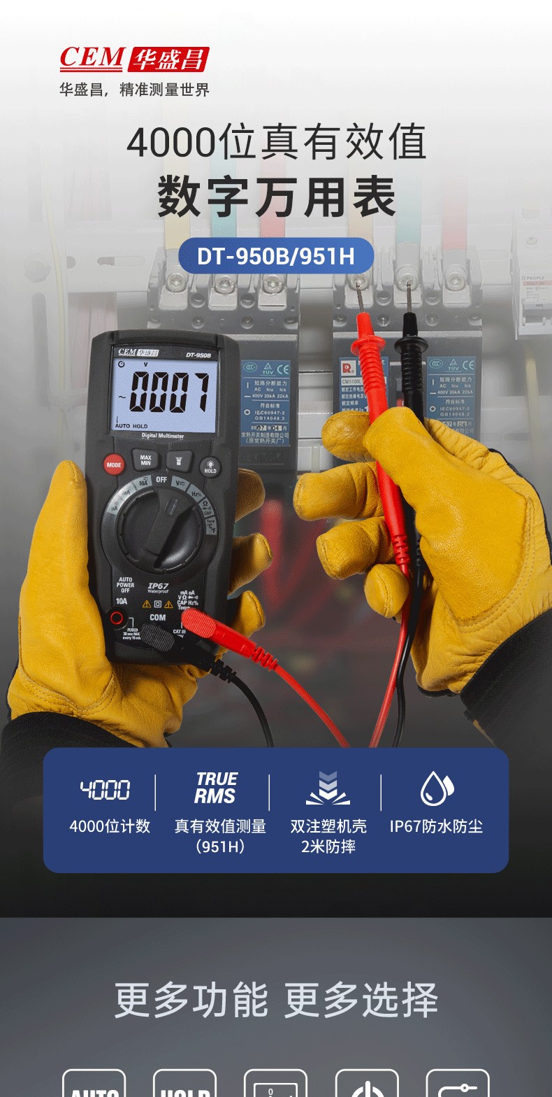 數(shù)字萬用表,一種多用途電子測量儀器,一般包含安培計、電壓表、歐姆計等功能,有時也稱為萬用計、多用計、多用電表,或三用電表。 數(shù)字萬用表適用于基本故障診斷的便攜式裝置,也有放置在工作臺的裝置,有的分辨率可以達到七、八位。 數(shù)字多用表(DMM)是在電氣測量中要用到的電子儀器。它可以有很多特殊功能,但主要功能就是對電壓、電阻和電流進行測量,數(shù)字多用表,作為現(xiàn)代化的多用途電子測量儀器,主要用于物理、電氣、電子等測量領(lǐng)域。