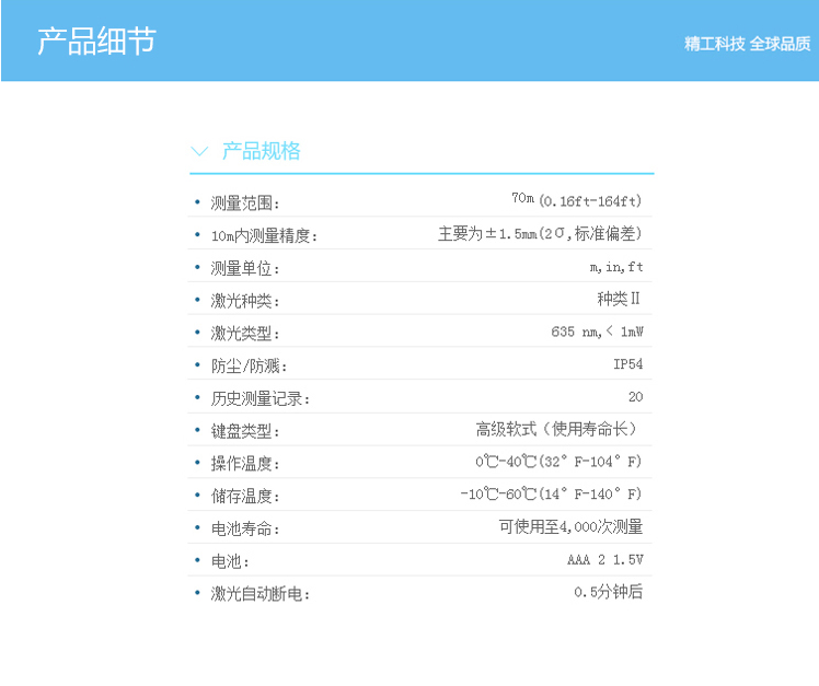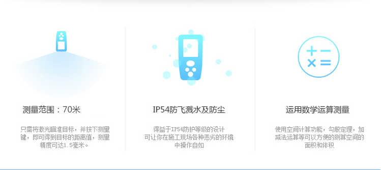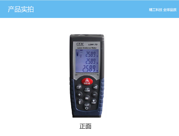 LDM-70為CEM自主設(shè)計(jì)、研發(fā)和制造的工業(yè)級遠(yuǎn)距離手持式激光測距儀,使用簡單安全,僅需單人操作無需借助其他工具,即使在非??量痰臏y量環(huán)境中也能輕松應(yīng)對。65米/70米能滿足更多工業(yè)與建筑行業(yè)的需求。 1、面積體積的計(jì)算功能; 2、運(yùn)用勾股定理間接測量; 3、加減功能; 4、連續(xù)測量功能; 5、最大與最小距離跟蹤; 6、背光顯示與多行顯示; 7、蜂鳴提示; 8、精度±1.5mm; 9、外觀小巧,雙注塑防滑軟膠超舒適手感。