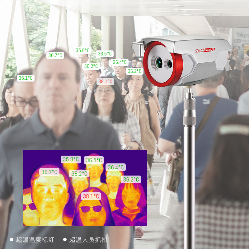 熱成像篩查原理1.紅外輻射原理 自然界中一切溫度高于絕對零度(負(fù)273.15攝氏度)的物體都會輻射紅外能量,熱成像儀只是被動接受人體輻射出來的紅外能量,對人體和環(huán)境是沒有任何危害的。 2.紅外熱成像儀原理 紅外熱像儀將紅外熱輻射轉(zhuǎn)換成電信號,經(jīng)過系統(tǒng)電路的處理,在顯示器上通過肉眼可見的RGB顏色顯示出來,實(shí)質(zhì)上是將不可見的紅外輻射轉(zhuǎn)換為可見的熱圖像,并配以溫度顯示。 3.熱成像篩查的優(yōu)勢與注意事項(xiàng) 熱成像可以對其視場角范圍內(nèi)的多目標(biāo)同時進(jìn)行體溫測量,減少人員接觸,安全效率高,但它的精度受到外界環(huán)境影響,所以應(yīng)用時應(yīng)該保持環(huán)境穩(wěn)定。 4.人體溫度篩查原理 篩查系統(tǒng)首先通過人臉檢測技術(shù),獲取人臉的區(qū)域。然后通過熱成像獲取人臉區(qū)域額頭溫度。這樣可以將人臉和溫度關(guān)聯(lián)起來。 需要注意的是: 1)人的體內(nèi)溫度通常在35°℃~37°C范圍內(nèi)波動,受到環(huán)境,運(yùn)動狀態(tài)等影響會出現(xiàn)體溫的波動,需要被測人員處于穩(wěn)定的環(huán)境中,避免劇烈運(yùn)動。 2)由于是采集人臉額頭,所以被測人員不要遮擋額頭,戴口罩不影響測量。