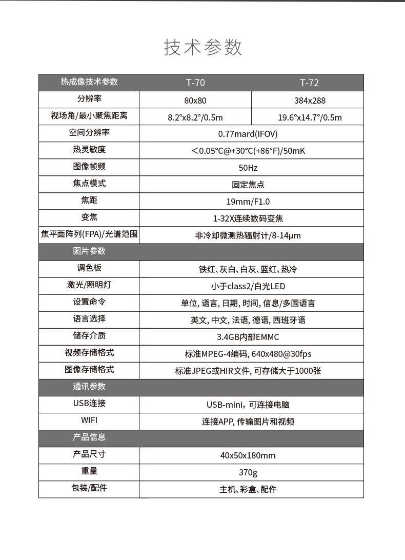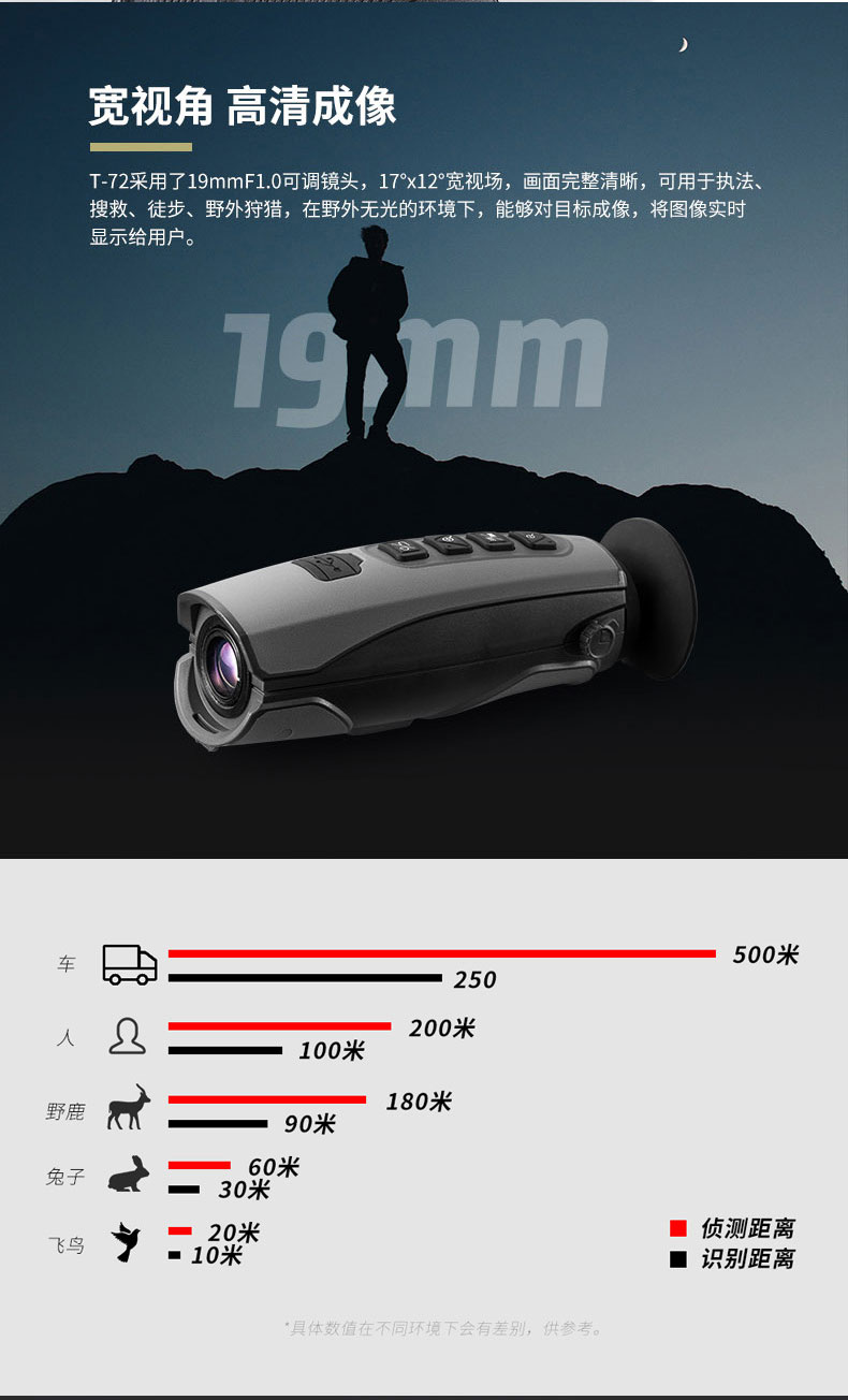 T-72系列熱成像儀望遠(yuǎn)鏡 ●384*288進(jìn)口傳感器 ●32倍連續(xù)放大靈活觀看 ●50Hz高圖像幀頻 ●WIFI連接實時圖像傳輸 ●可選外接大屏
