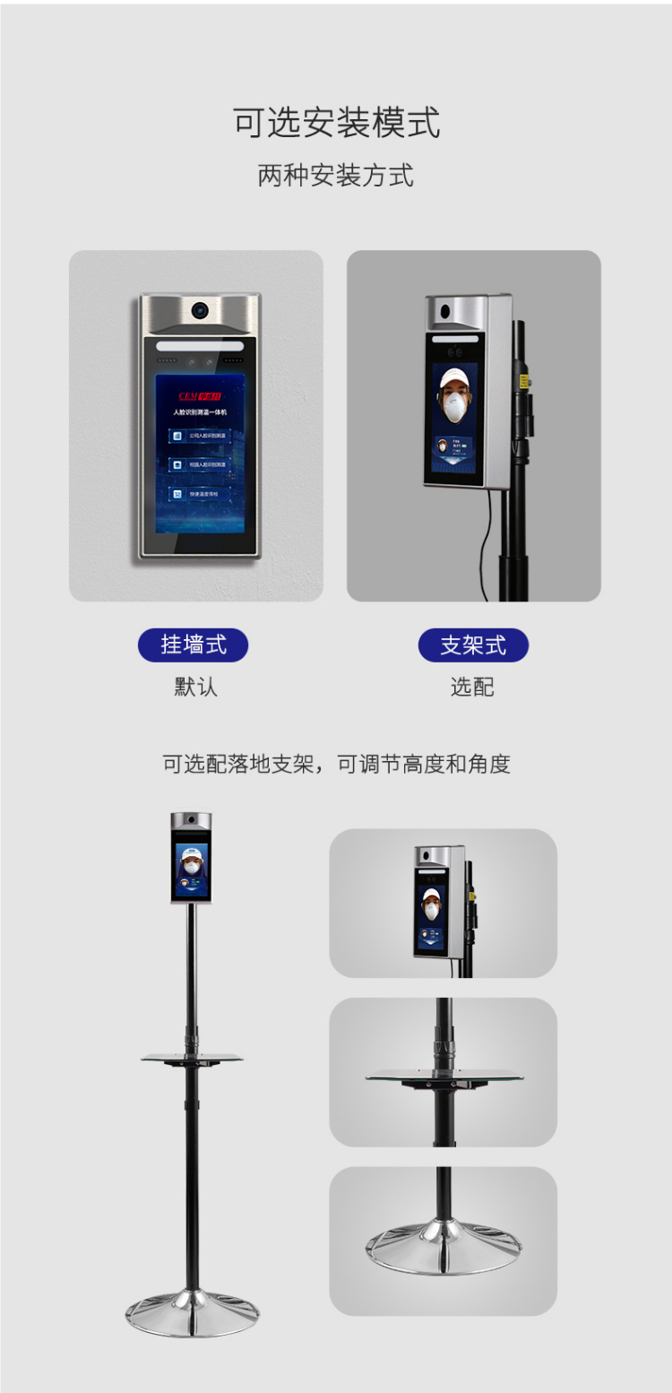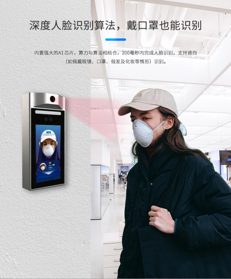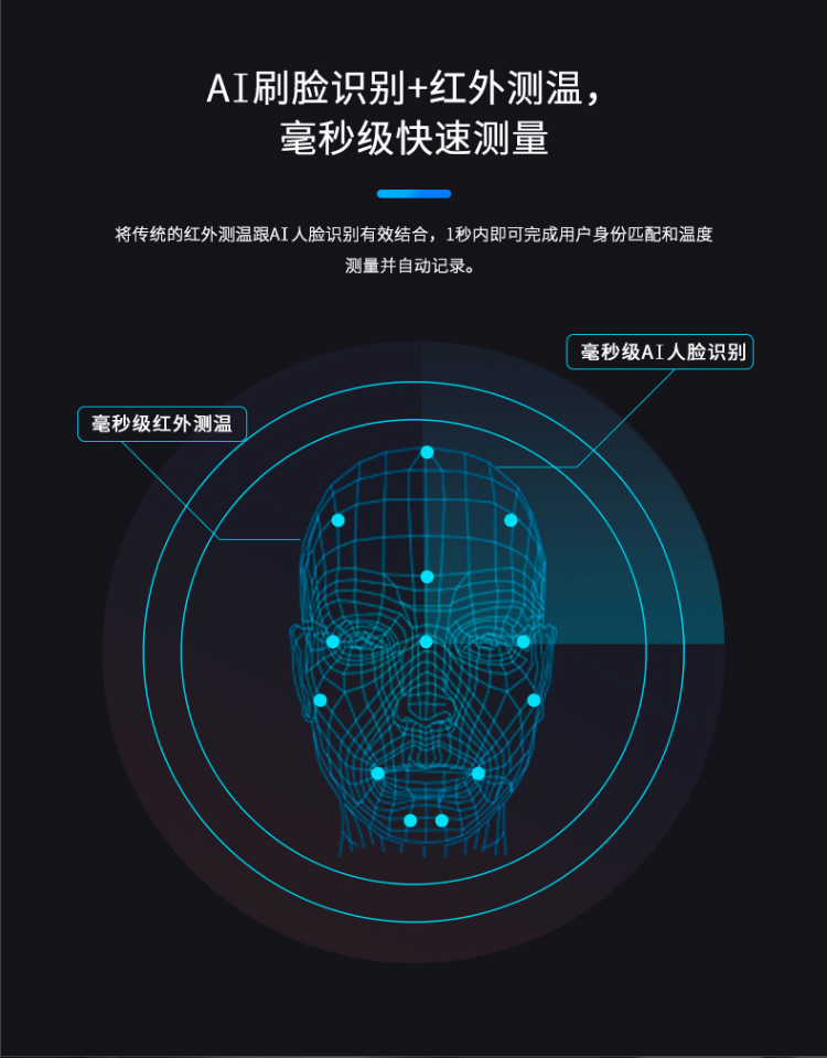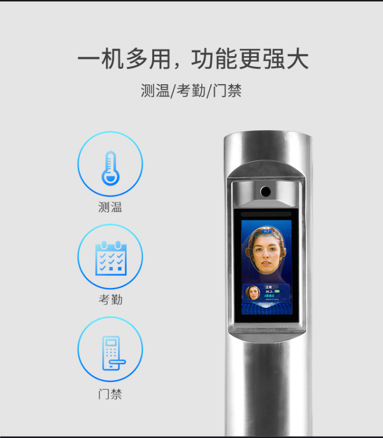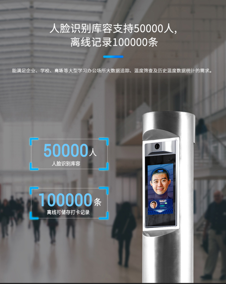 單點(diǎn)紅外測(cè)溫、測(cè)溫范圍:16-45℃、50000大容量存儲(chǔ)、只能AI人臉識(shí)別、一機(jī)多用