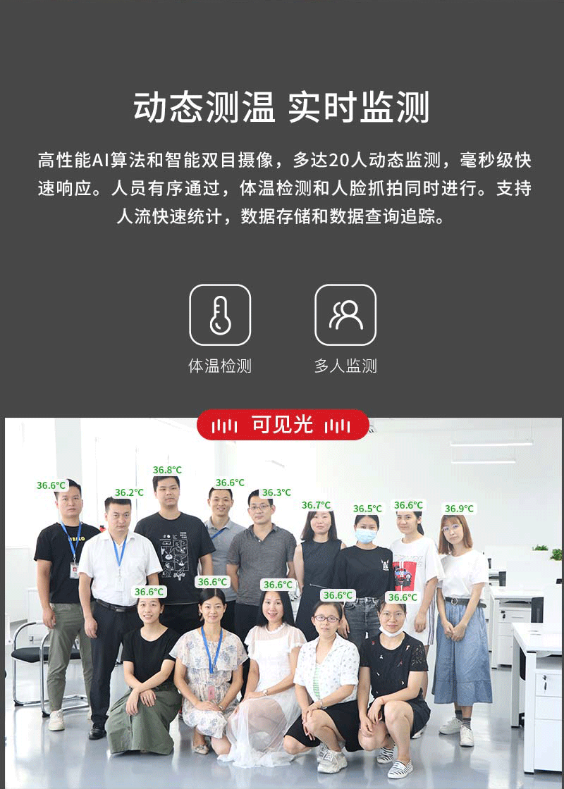 ·被測(cè)人員要求:戶外陽光照射后,或者劇烈運(yùn)動(dòng)后,需在室內(nèi)環(huán)境平靜適應(yīng)5分鐘后進(jìn)行測(cè)試;人員從戶外場(chǎng)景進(jìn)入室內(nèi),建議經(jīng)過回廊緩沖至少10秒鐘后,再步入檢測(cè)位置,如果室內(nèi)外溫差較大時(shí),建議在室內(nèi)停留2~3min再行檢測(cè);確保待測(cè)人員整個(gè)面部處于設(shè)備攝像視野內(nèi),同時(shí)面部及額頭不能被遮擋(帽子、圍巾、墨鏡、面具、退燒貼等可能遮擋面部的物件,建議先提前摘下,適應(yīng)0.5-1分鐘后再進(jìn)行測(cè)試。)