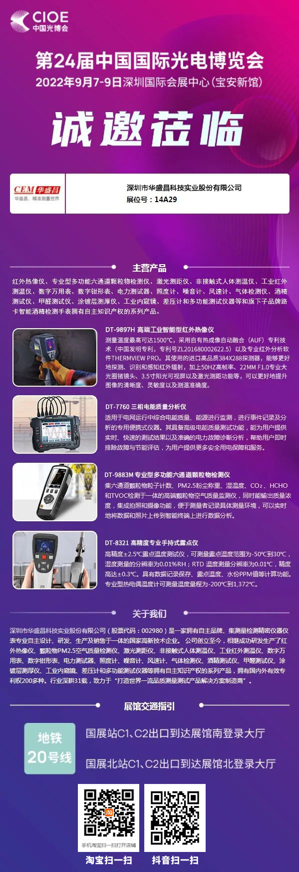 CEM華盛昌即將亮相2022年9月CIOE中國光博會(huì)