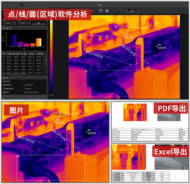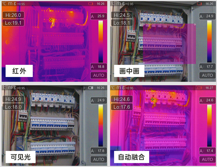 紅外圖像和可見(jiàn)光圖像的組合顯示,能更精準(zhǔn)地識(shí)別溫差,讓工程師可以更好觀察接觸點(diǎn)長(zhǎng)期處于高溫狀態(tài)的情況,減少工作量。因?yàn)楣こ處熆筛鶕?jù)可見(jiàn)光圖片來(lái)判斷紅外圖片中熱點(diǎn)的未知,并自動(dòng)生成報(bào)告,減少操作時(shí)間,提高工作效率。